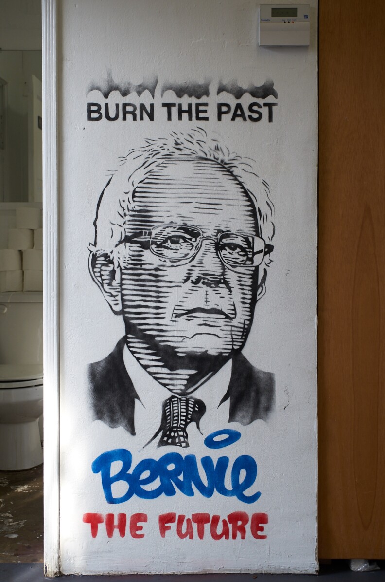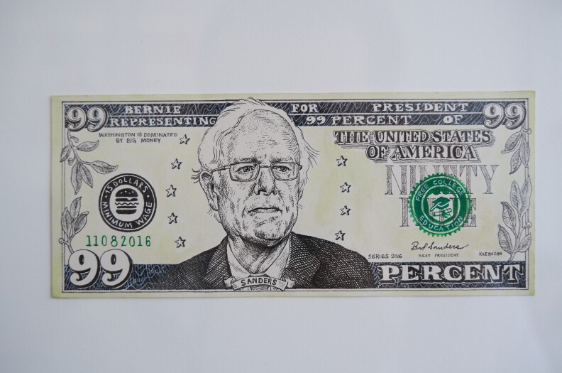 Keeping to this directive, Calderin sought artists who would get people thinking about the presidential candidate in subtle ways. He asked them to look through the campaign website and create works inspired by what they saw. The result is a gallery featuring an array of works; some use images of Sanders, and some are a bit more abstract.