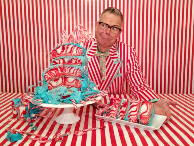 Charles Phoenix makes his crazy candy cane cake