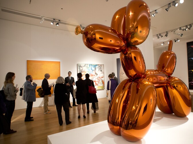 Tonight, filmmaker John Waters takes to the stage to chat with artist Jeff Koons. Koons has made a name for himself with his massive colorful reproductions of objects like balloon animals. Last fall, his stainless steel sculpture titled Balloon Dog Orange became the most expensive work by a living artist sold at auction.