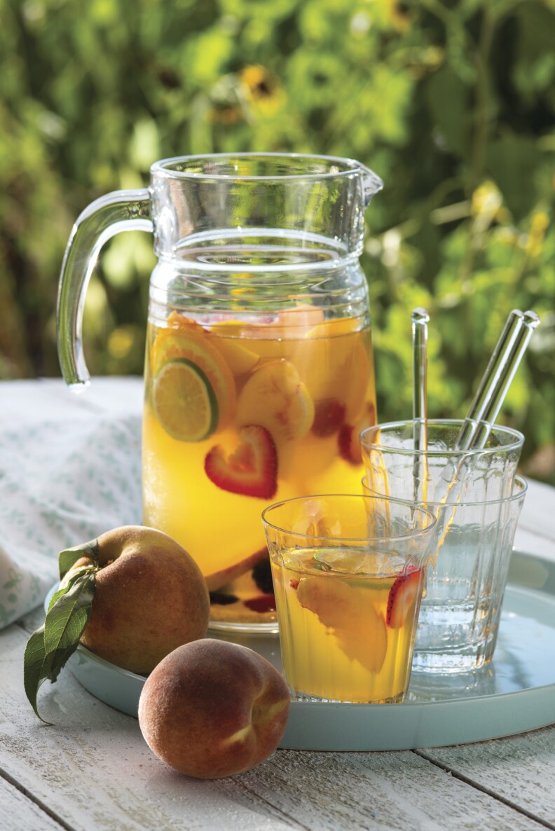 Oftentimes people don't think of a fruit in a salad, in an entree, and what we've discovered with peaches is they're so versatile, so fun to incorporate into a variety of dishes. For example, Nikkiko developed a fantastic peach gazpacho, which is a cold peach soup, which is just so fresh and delightful with cucumber and garlic and seasonings that just wake up your palate. It's just beautiful in that way. There's another recipe that I developed, which is an asian-influenced recipe that's called shaking beef with peaches, which is in essence a stor fry beef with peaches over a bed of lettuce with a light lime vinaigrette. i think it's a perfect summertime dinner entree.
