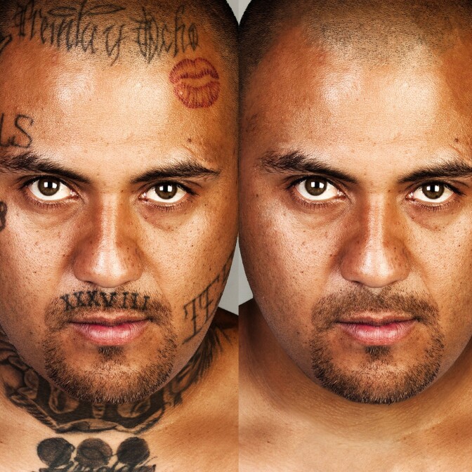 How those tattoos can change someone's self-image is the subject of a book project that turns the tables on gang life. "Skin Deep" features photographs of heavily tattooed ex-gang members before and after their ink has been removed using Photoshop.