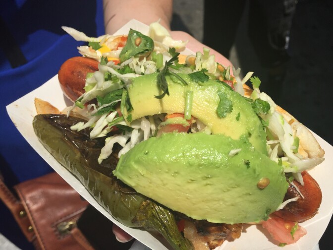 Libby: "This is really excellent. Compared to the Jesus hot dog, it doesn't have as many fun toppings. But the actual sausage is so tasty and so unique." 9 FRANKS