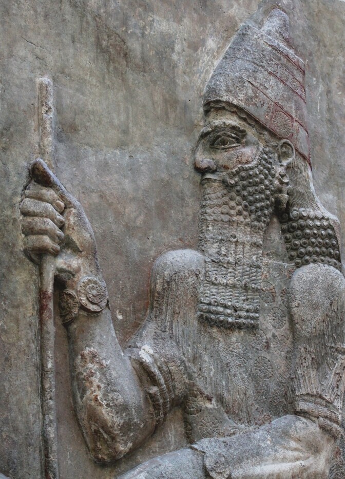 Like the kind built for the Assyrian King, Sargon II. Never mind that Sargon's reign ended a long time ago, in 705 B.C. He was an ancient ruler whose style coincided with the Samson theme Schleicher was going for.
