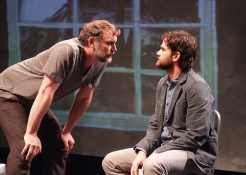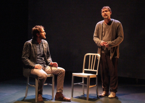 (Tim Cummings, left, and Brian Henderson star in Dan O'Brien's play, "The House in Scarsdale: A Memoir for the Stage." Photo courtesy of Boston Court Performing Arts Center)