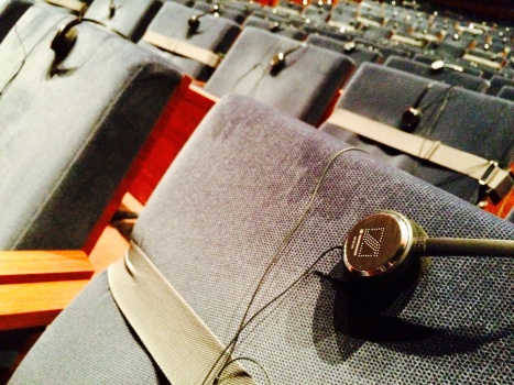 (Every seat at "The Encounter" comes with a pair of headphones. Marcos Najera/KPCC)
