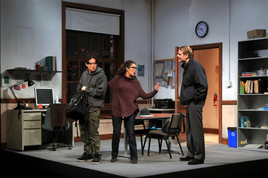 (Left to right: Raymond Lee, Sandra Oh, and Corey Brill in the new play, "Office Hour")