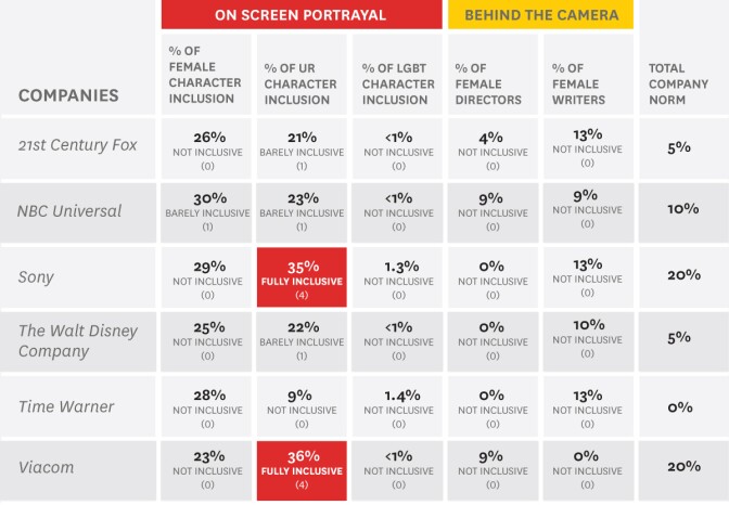 "The company scorecard illustrates that film distributors are failing when it comes to representing their audience on screen and in their behind the camera hires," the authors concluded.