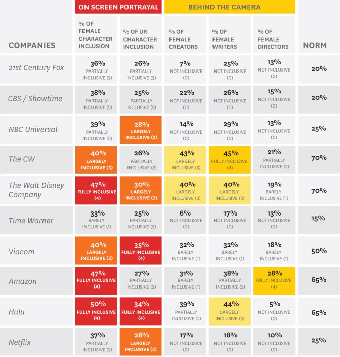Only two companies, Sony and Paramount, managed "Full Inclusivity" on the study's scale.